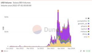 During the last week of August, for example, there was a $7.7 billion decrease in SOL DEX volume. That was the greatest change in trading volume within the last 6 months.