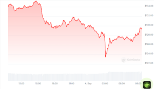 The cryptocurrency continues to face strong downward pressure as its price aims at closing below $127.00. Already, on 4 September the SOL price dropped to $123.45 before rebounding to $129.60 a few hours later. The following graph shows the SOL daily price chart.