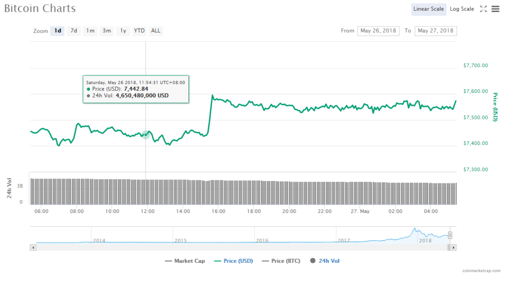 Bitcoin Price Spikes Up, Hits $7,500 Mark