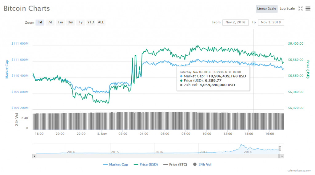 In the past 24 hours, Bitcoin jumped 0.04% to trade at $6,365.84. The leading cryptocurrency’s trade volume trickled to $4.00 billion, while its market slid to $110.49 billion.