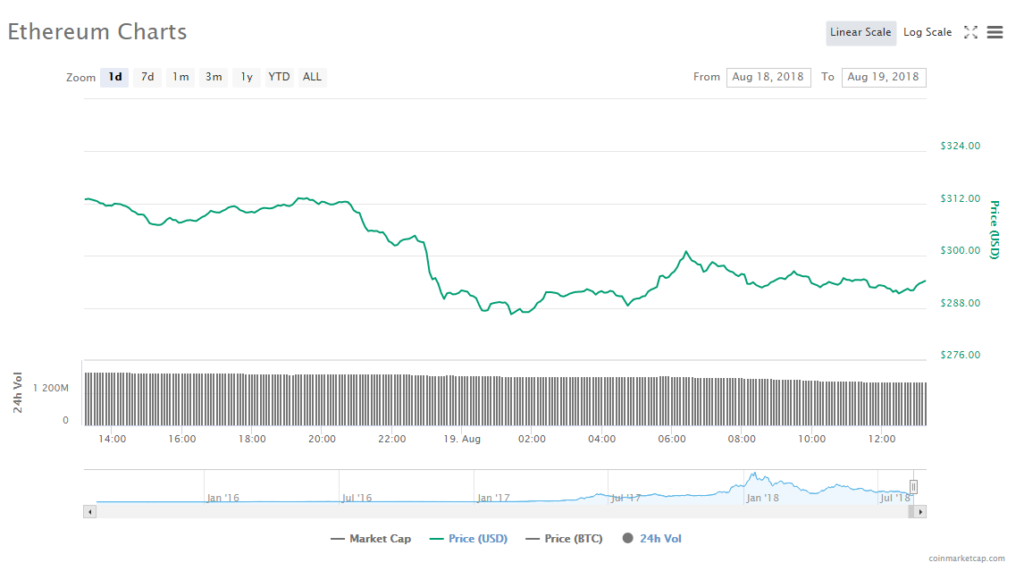 Ethereum’s price fell 5.82% to trade at $294.06. As for the altcoin’s trading volume, it reached $1.61 billion; whereas its market capitalization hit $29.82 billion.