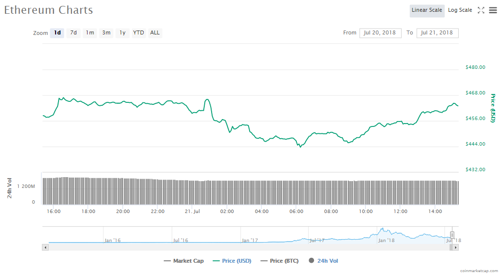 Ethereum’s price regained 0.67% to trade at $463.04. The currency’s trading volume is at $1.78 billion and its current market cap is $46.71 billion.