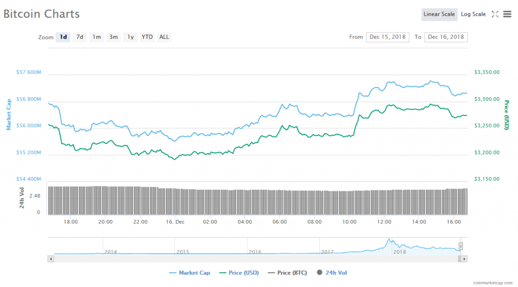In the past 24 hours, Bitcoin jumped 0.91% to trade at $3,272.08. The leading cryptocurrency’s trade volume trickled to $3.86 billion, while its market slid to $57.02 billion.
