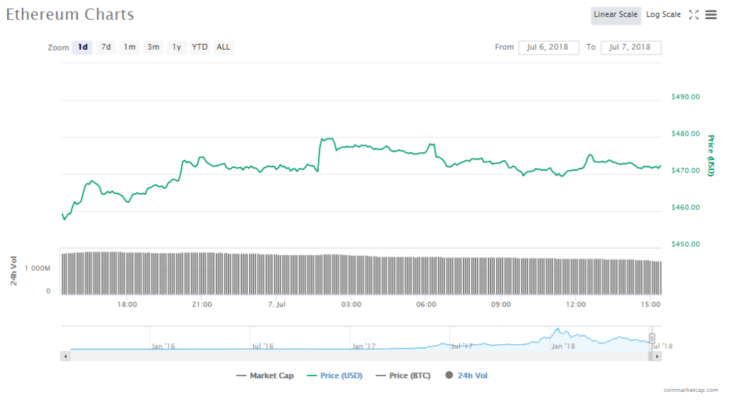 ETH slipped a little more by 0.35% to trade at $472.27 per token. The token’s volume of trade is currently low at $1.44 billion and its market cap is now at $47.56 billion.