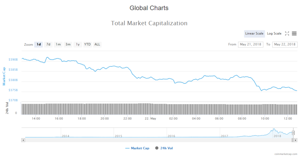 The volume of trading in cryptocurrencies has gone down to $16.09 billion, while the market capitalization of the industry is now $376.06 billion.