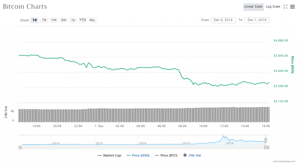 Market Update 12.07.18 – BTC Drops below $3.4k, Sets New 2018 Low