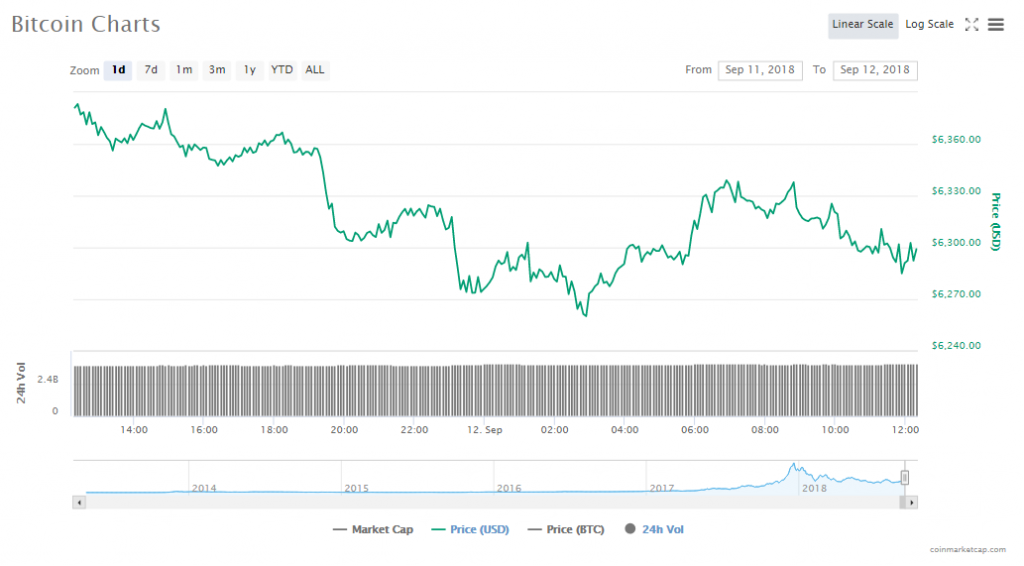 Bitcoin’s current token price is $6299.04, a 1.31% fall in the last 24 hours. The market cap of the cryptocurrency is $108.72 billion and volumes of trading went up slightly to $3.88 billion.