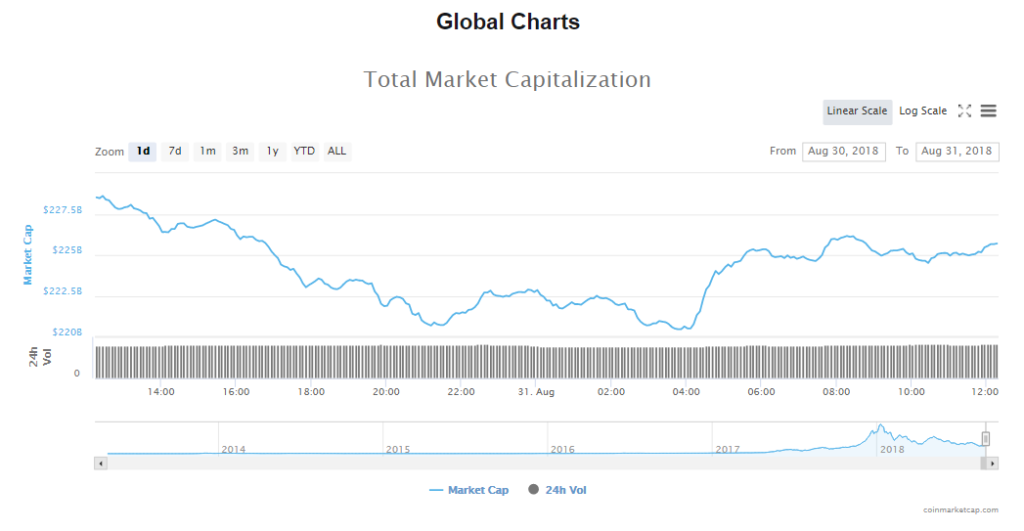 Volumes in the crypto market’s trading went up from yesterday to $13.18 billion. The market’s valuation of the market, however, remained almost the same at $225.80 billion.