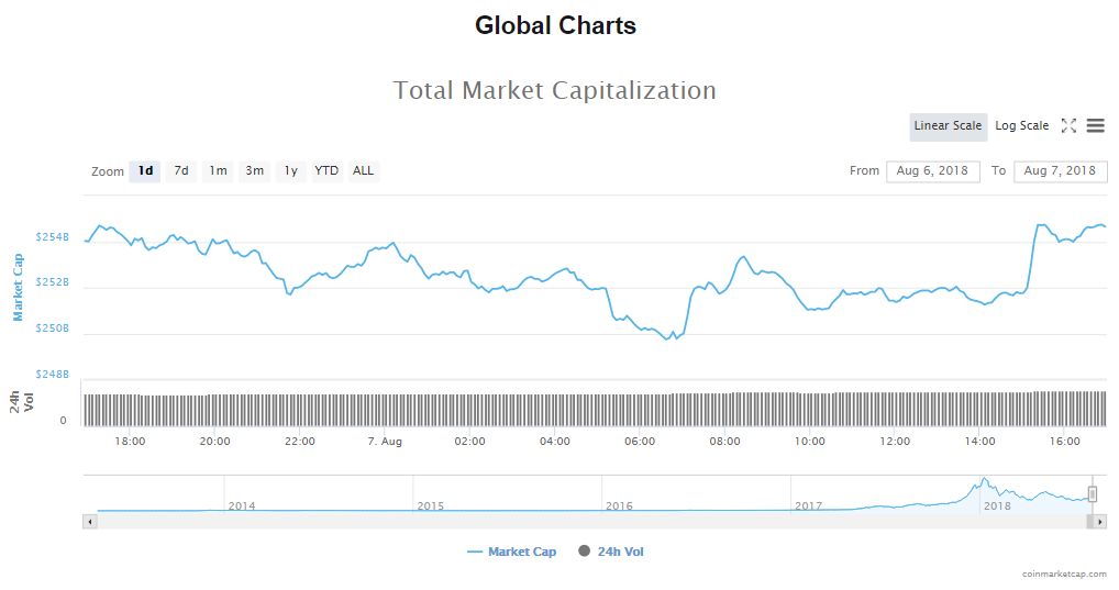 The volume of trade in the cryptocurrency market has increased slightly in the last 24 hours to its current $12.32 billion. Additionally, the market’s value has also increased to $254.97.