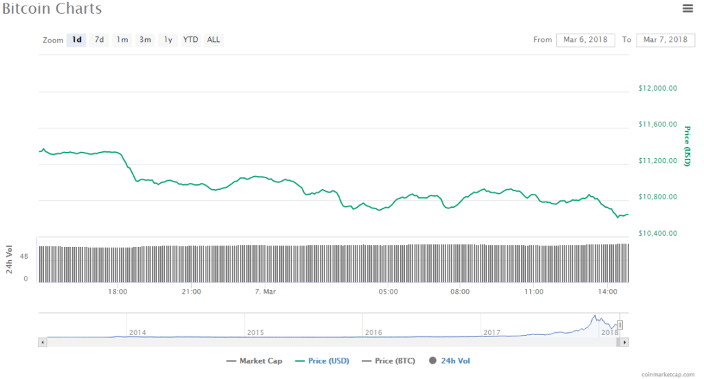 Since yesterday, Bitcoin has dropped by 6.11% to its current trading price of $10,648.20 and has seen a volume of $6.88 billion in trading. The crypto’s value in the market is currently $180 billion.