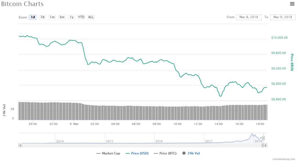 Since the beginning of 2018, cryptocurrencies, Bitcoin in particular, have been struggling to beat the price resistance that has gripped the crypto market. The Bitcoin has dropped back to below the $10,000 mark, trading at $8,371 at its lowest on Friday.