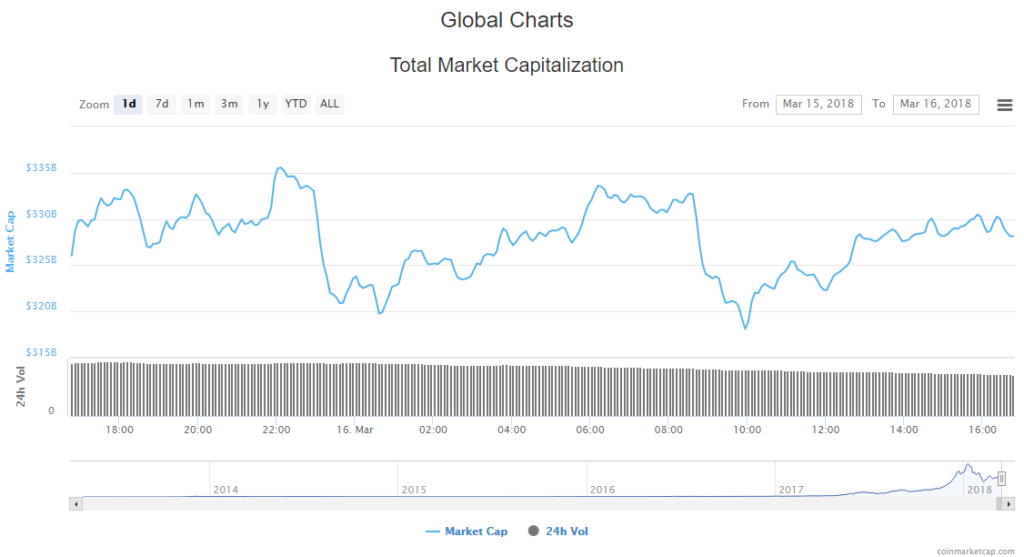 Trading volume once again went down to $13.61 billion in the last 24 hours. Crypto market valuation went up a little to $324.70 billion in the last one day.