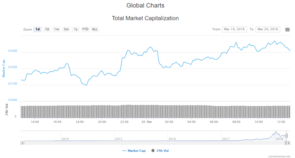 Trading volume in the overall cryptocurrency market is slightly lower than yesterday at $17.81 billion. The cryptocurrency market’s value, however, has gone up a little more to $330.82 billion.