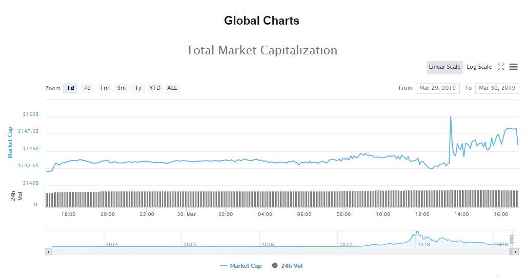 The crypto market’s capitalization is almost the same as yesterday at $143.74 billion. Trading volumes are at $36.58 billion.