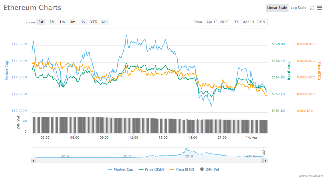 • Ethereum’s market price fell 0.90% to $163.82, and the market value is $17.31 billion.