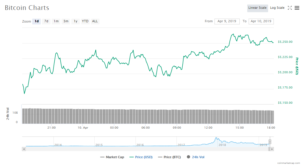 Up 0.91%, the price of Bitcoin is now $5246.71, and the valuation of the asset in the market is now $92.53 billion. The crypto is facing volumes in trade of $13.71 billion.
