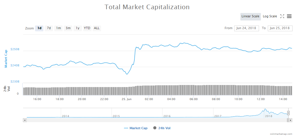Trading volume so far today has been at $15.09 billion. The capitalization of the cryptocurrency market is at $251.42 billion.