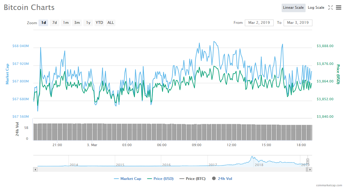 Taking into consideration past 24 hours, the world’s most popular crypto Bitcoin was successful in jumping to 0.32%. As such, it was able to be traded at around $3,866.89. The digital currency’s volume, on the other hand, sat at roughly $7.1 billion, while its market nested at $67.93 billion.