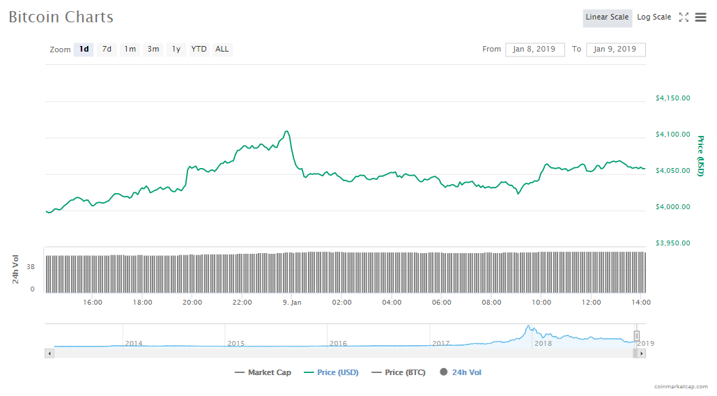 Bitcoin has gained 1.20% in its token price in the last 24 hours to trade at $4,053.23. The crypto’s valuation in the market is now at $70.81 billion and trading volumes are up at $5.38 billion.
