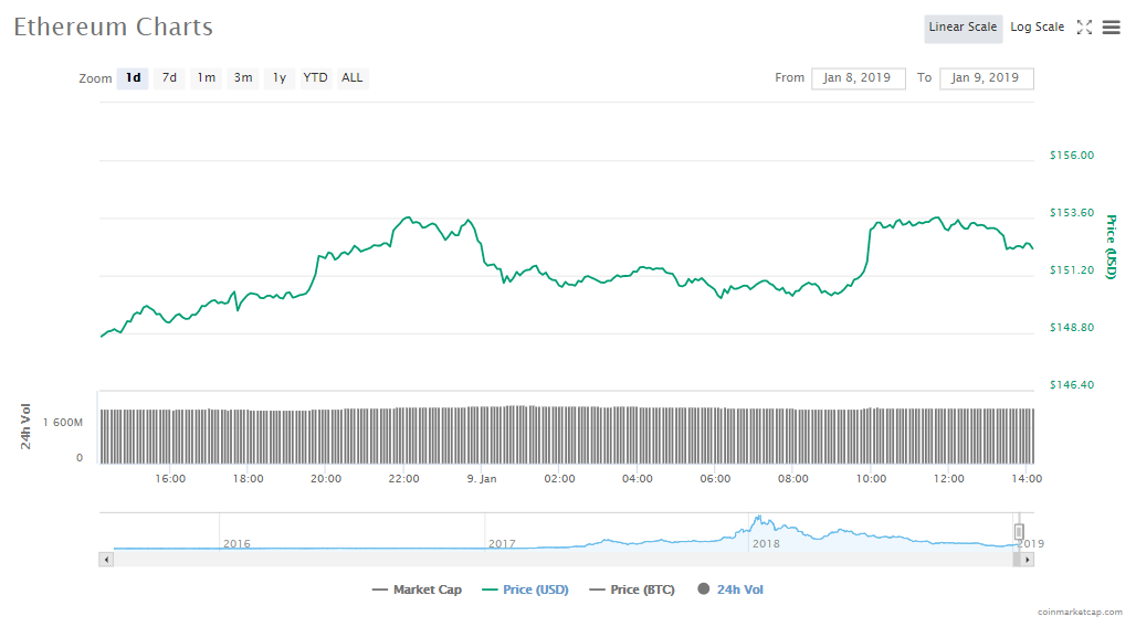 Ethereum now has a token price of $152.04, a 1.85% gain in the last 24 hours. The crypto’s market capitalization is also up to $15.85 billion and trading volumes are at $2.45 billion.