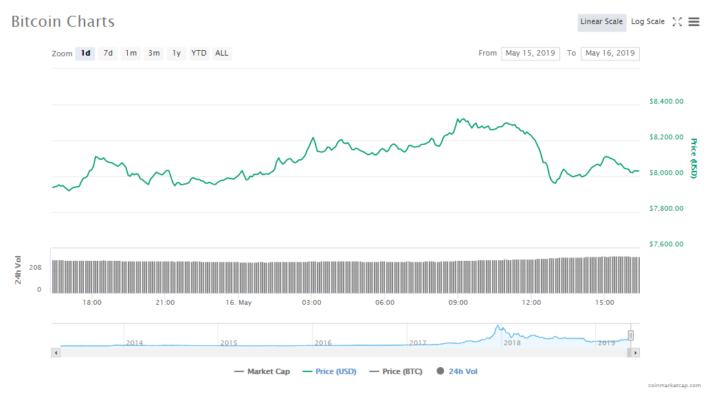 In the last 24 hours, BTC has gone up by 1.06% to trade at $8040.58. The crypto’s capitalization is at $142.34 billion and the volumes of trade it is currently experiencing are $32.59 billion.
