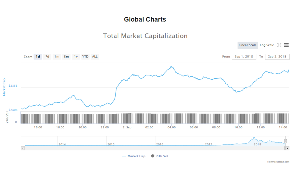 The volume of trade in the crypto market sat at $13.66 billion. The market’s capitalization, on the other hand, reached $237.74 billion.
