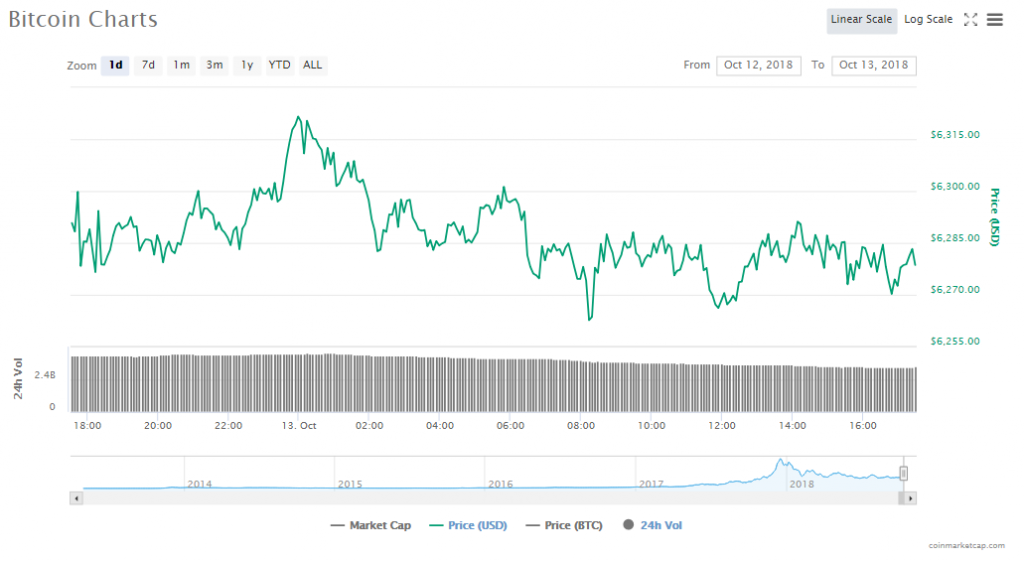 Bitcoin’s price is $6298.22, gaining only 0.09% since yesterday. The crypto’s market cap slipped an iota to $109.08 billion. Trade volumes are $3.35 billion.