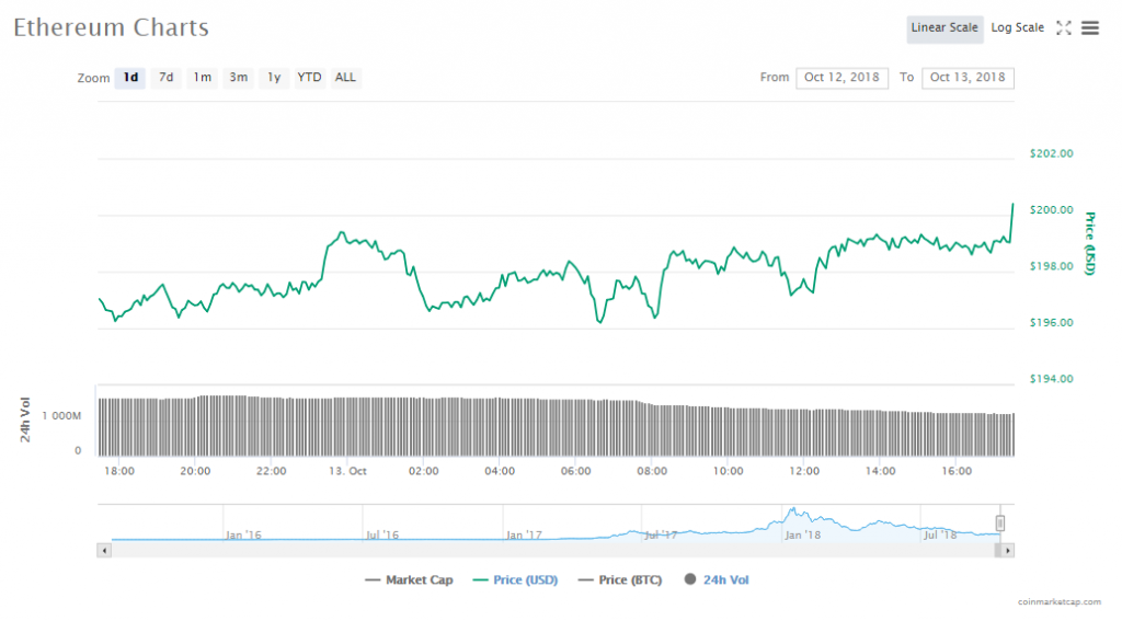 Ethereum’s is now $200.11, gaining about 1.49% in the last one day. The value is $20.51 billion and the crypto’s trading volume is $1.23 billion.