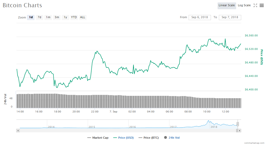 After yesterday’s debacle, Bitcoin is showing signs of recovery, with its price now at $6539.06, which is a 1.11% increase. BTC’s value has also inched up to $112.95 billion while trading volumes have dropped to $4.71 billion.