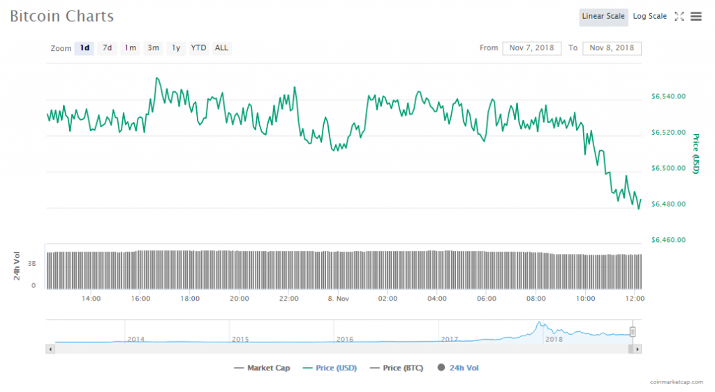 • Bitcoin is priced at $6485.17, dropping 0.73%. The virtual currency is currently worth $113.35 billion.