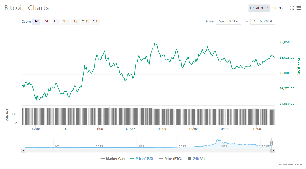 After a day of its price dropping, Bitcoin’s price is once more above the $5k mark at $5031.64, a 1.20% gain in the last one day. Trading volumes are at $16.23 billion and the crypto’s capitalization is at $88.70 billion.