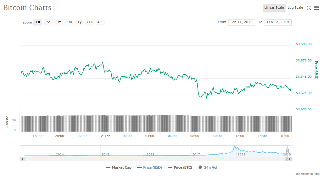 - Bitcoin’s token price is $3626.20, declining 0.84%. Bitcoin’s market worth at this time is $63.58 billion.