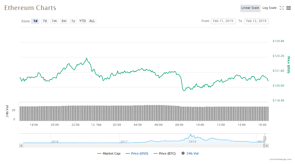 The Ethereum token’s price is now 120.73, which is a 0.21% decline since yesterday. The most valuable altcoin in the world now has a capitalization of $12.65 billion and trade volumes are $3.08 billion.