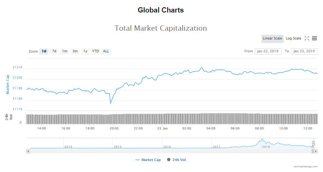 The cryptocurrency market is gained some traction and is currently at $120.44 billion. Trade volumes for the market are at $15.79 billion.