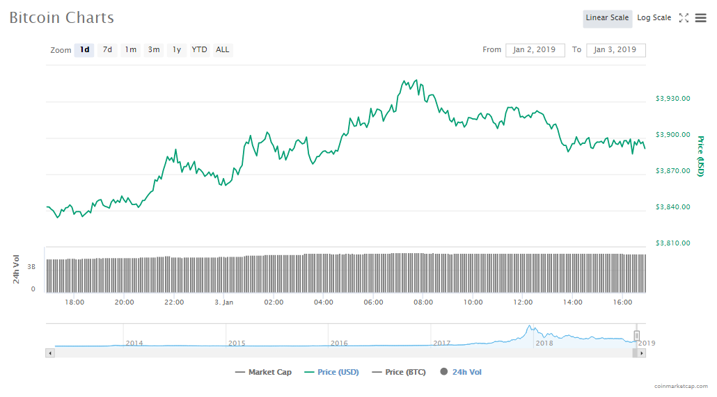 Bitcoin’s price is now $3890.25, which a 1.37% increase in the last 24 hours. The capitalization of the crypto is now $67.92 billion and volumes in trading are at $5.09 billion.