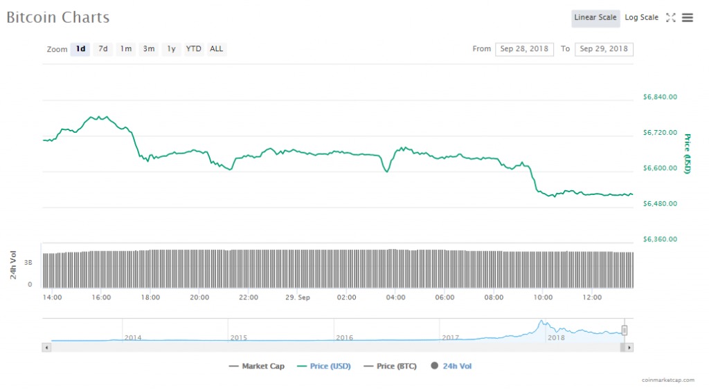 - Bitcoin’s price is now at $6523.04, falling 3.17%. The valuation of the cryptocurrency is now $112.78 billion.