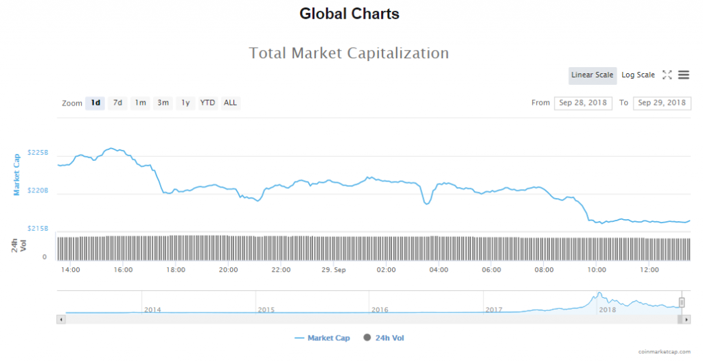 Trading volume in the crypto market has slipped by $1.08 billion to a current $15.86 billion. The market’s value is down by $7.31 billion since yesterday to its current $216.69 billion.