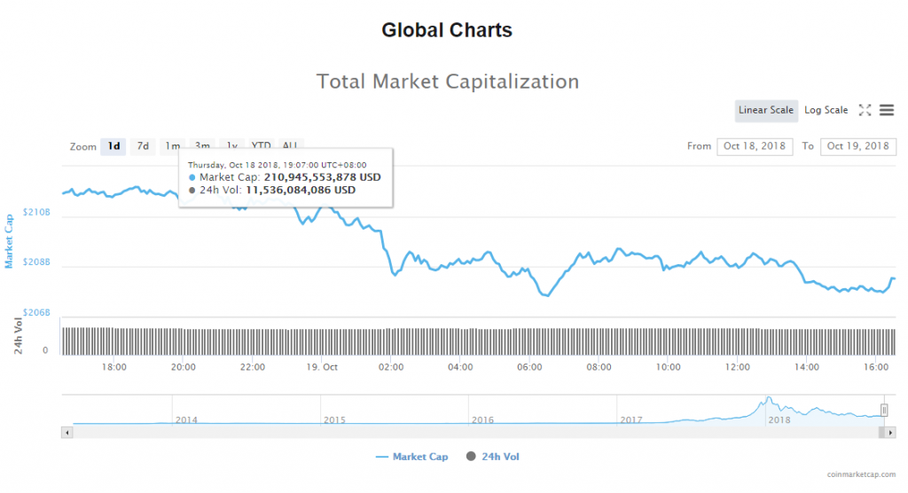 The volume of trade in the crypto market sat at $11.36 billion. The market’s capitalization, on the other hand, reached $207.49 billion.
