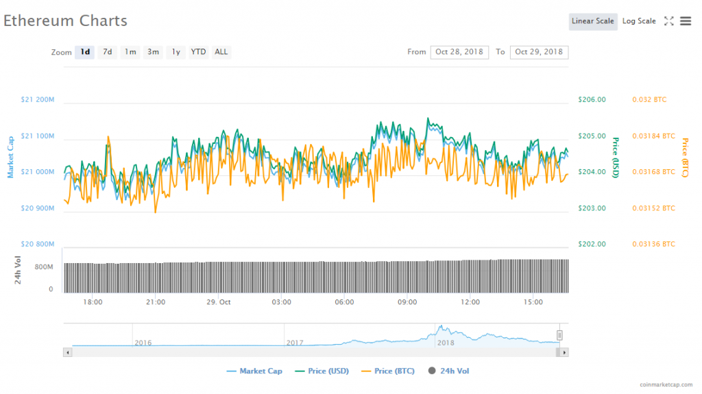 Ethereum’s price jumped 0.07% to trade at $204.36. As for the altcoin’s trading volume, it reached $1.21 billion; whereas its market capitalization hit $21.02 billion.