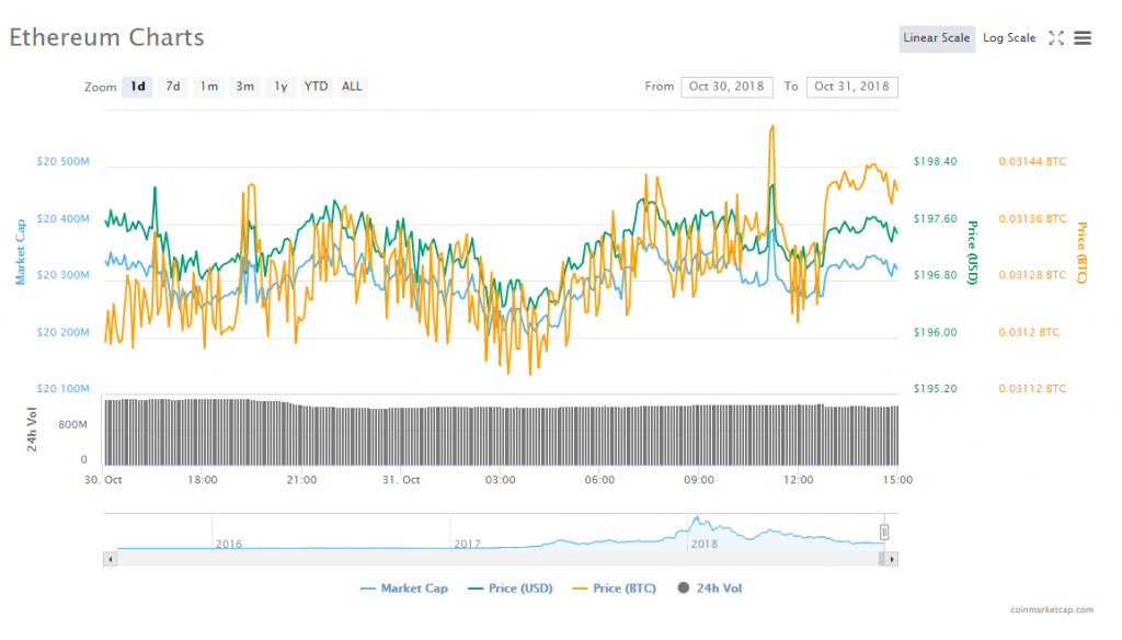 Ethereum’s price fell 0.02% to trade at $197.53. As for the altcoin’s trading volume, it reached $1.34 billion; whereas its market capitalization hit $20.33 billion.