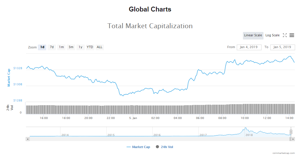 The capitalization of the crypto market inched up to $132.54 billion with trading volumes of $16.87 billion.