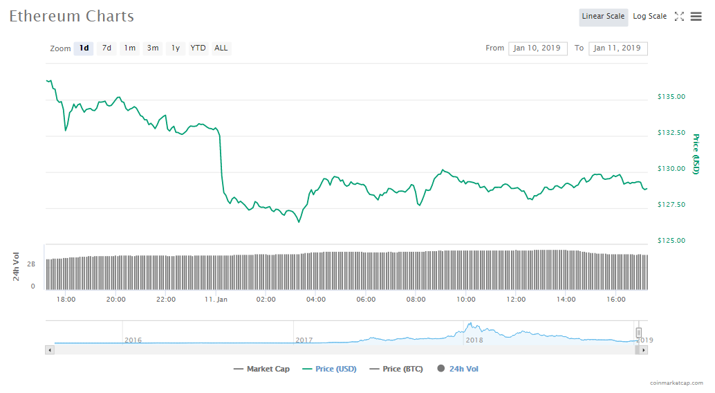 Ether has fallen 5.47% since yesterday and now has a trading price of $128.96 per token. The capitalization of the crypto is $13.45 billion with volumes of trade at $3.08 billion.