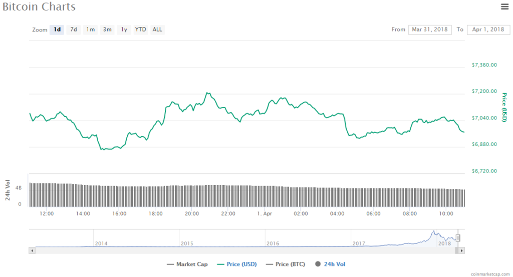 Bitcoin found some relief in the last 24 hours, with its price going up by 1.34% to $6969.85. Trading volume remained low at $4.31 billion, but the cryptocurrency’s market value went up to $118.35 billion.
