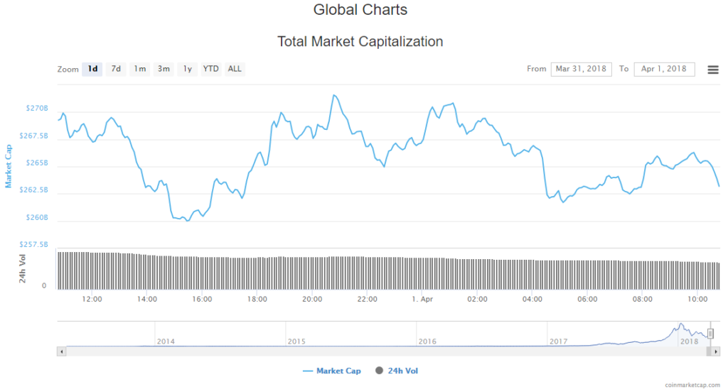 While the cryptocurrency market’s value increased to $263.19 billion, its trading volume fell even further to $10.61 billion in the last 24 hours.