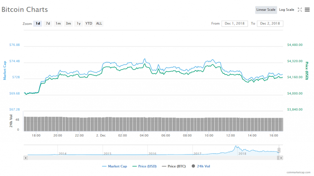 - Bitcoin’s market price jumped 3.90% to $4,172.89, and its value in the market is $72.62 billion.