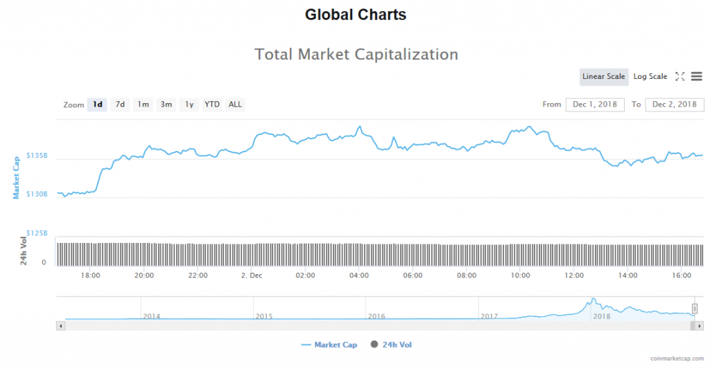 The volume of trade in the crypto market sat at $14.95 billion. The market’s capitalization, on the other hand, reached $135.43 billion.
