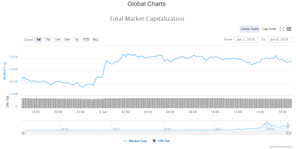 Trading volume in the global cryptocurrency market is at $15.01 billion. Capitalization of the crypto market is at $343.31 billion.