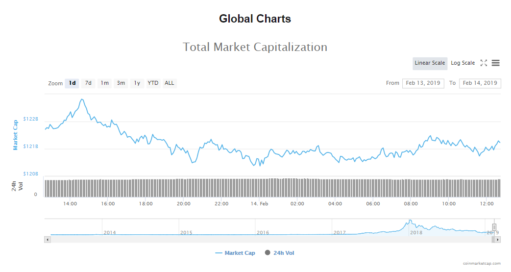 The capitalization of the crypto market has slipped a notch to $121.28 billion, and the volumes of trade are at $20.76 billion.