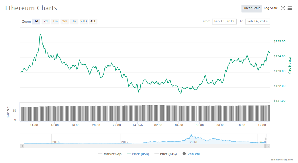 Ethereum is up 0.80% in trading so far today, and its current price is $124.36 per token. The crypto has a worth in the market of $13.03 billion and is experiencing trade volumes of $3.46 billion.