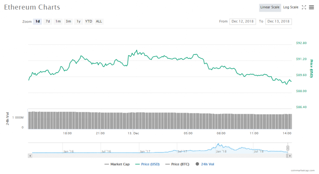 - Ethereum’s price is $89.13, losing 0.51% in the last one day. The market value of the asset is $9.24 billion.